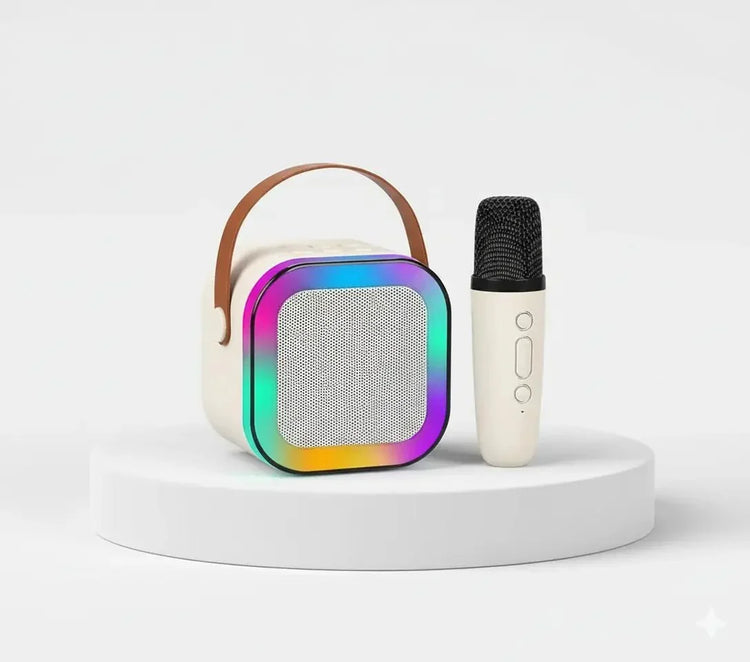 Bring your music to life with the GlowTune Karaoke Kit, a fun and stylish wireless speaker and mic combo made for parties, home jam sessions, and on-the-go entertainment. Designed with a vibrant LED glow and sleek minimal design, the GlowTune Karaoke Kit makes singing and sound-sharing easy and exciting. With Bluetooth connectivity, you can instantly pair it with your smartphone, tablet, or laptop and enjoy crystal-clear vocals and deep bass with no complicated setup.